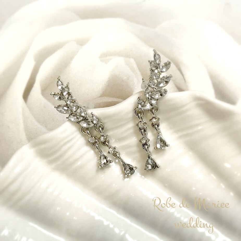 木の葉の形のビジューとクリスタルのコンビがお洒落な大人の花嫁さまにピッタリ♪
