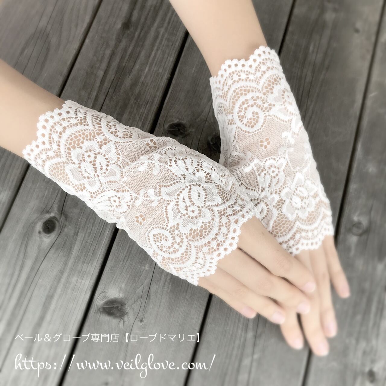 ふんわりレースがナチュラルで可愛い、フィンガーレスタイプのショートグローブです。