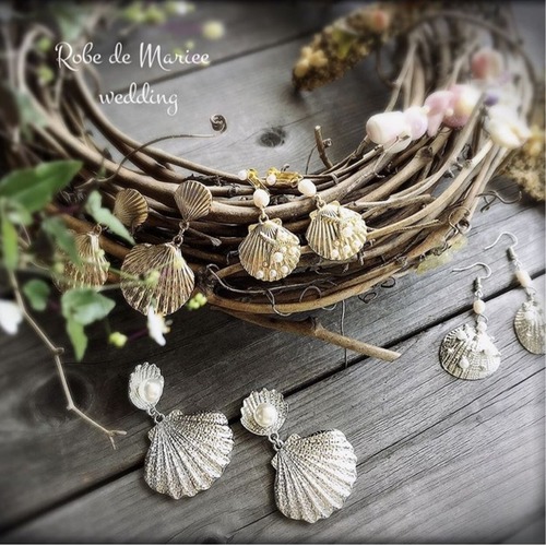 存在感のある大きめシェルシェイプパーツと可憐なパールのコンビがリゾートの花嫁さまにも、夏のアーバンマーメイド花嫁様にもピッタリ♪