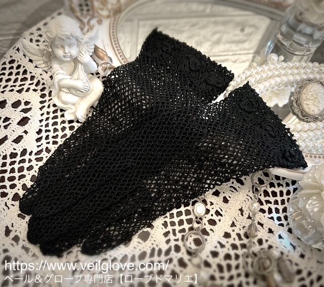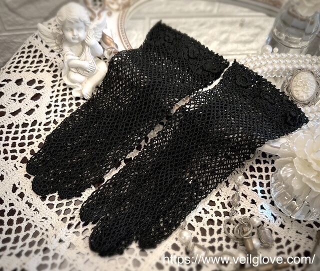 クロッシェ編みのメッシュ素材が優雅なアンティーク調ショートグローブです。