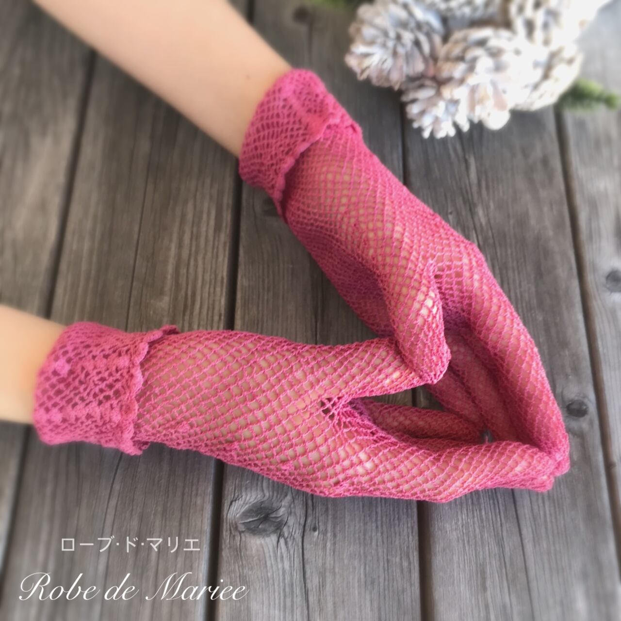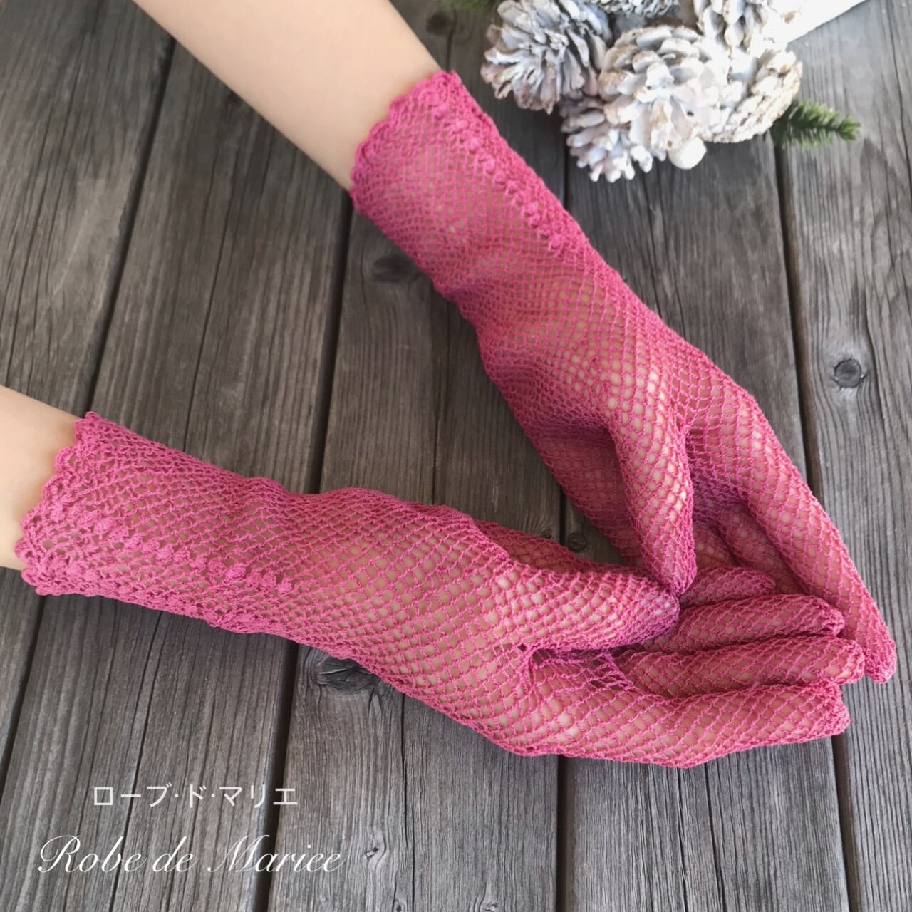 濃いめのオールドローズカラーが上品シックなクロッシェレースグローブ。