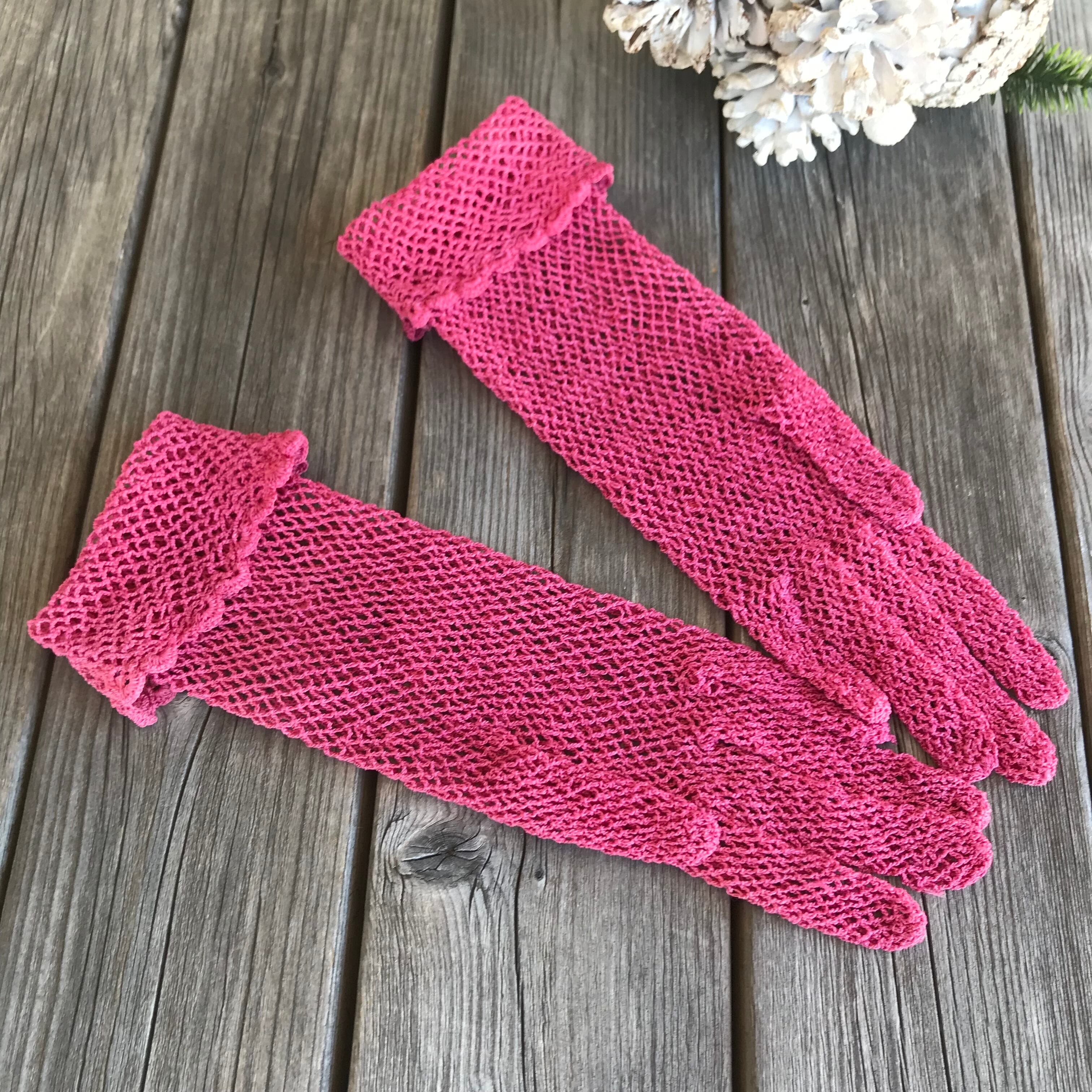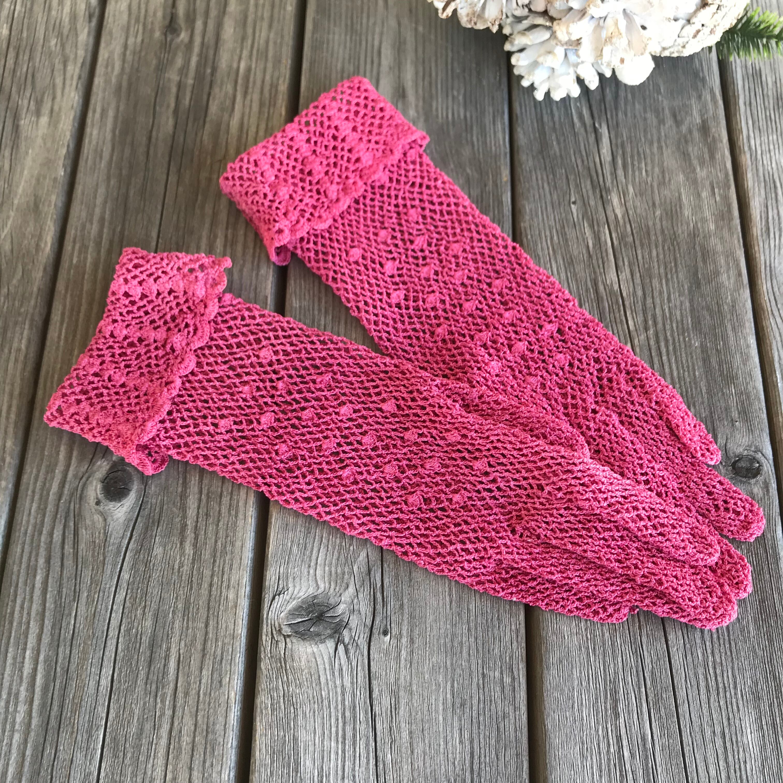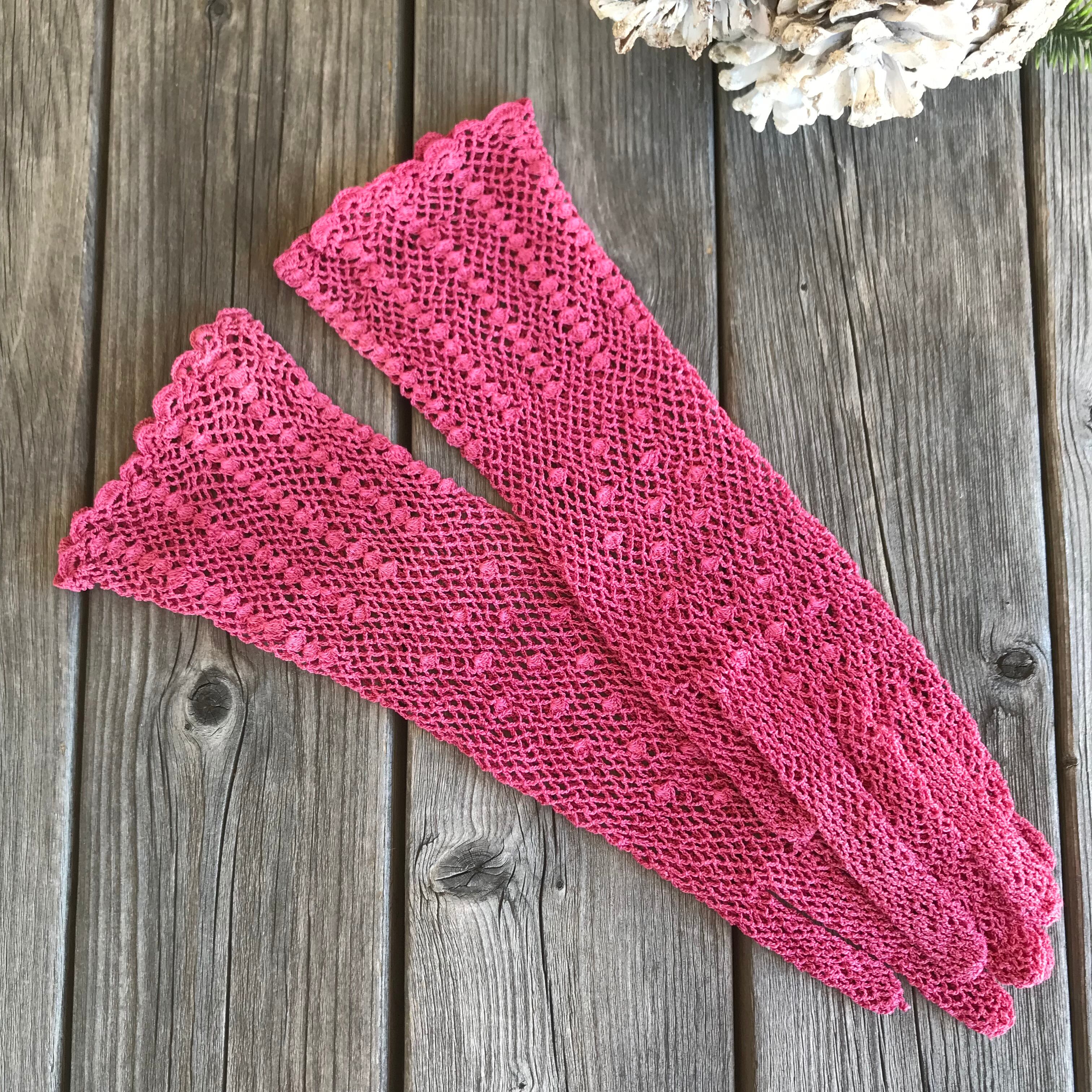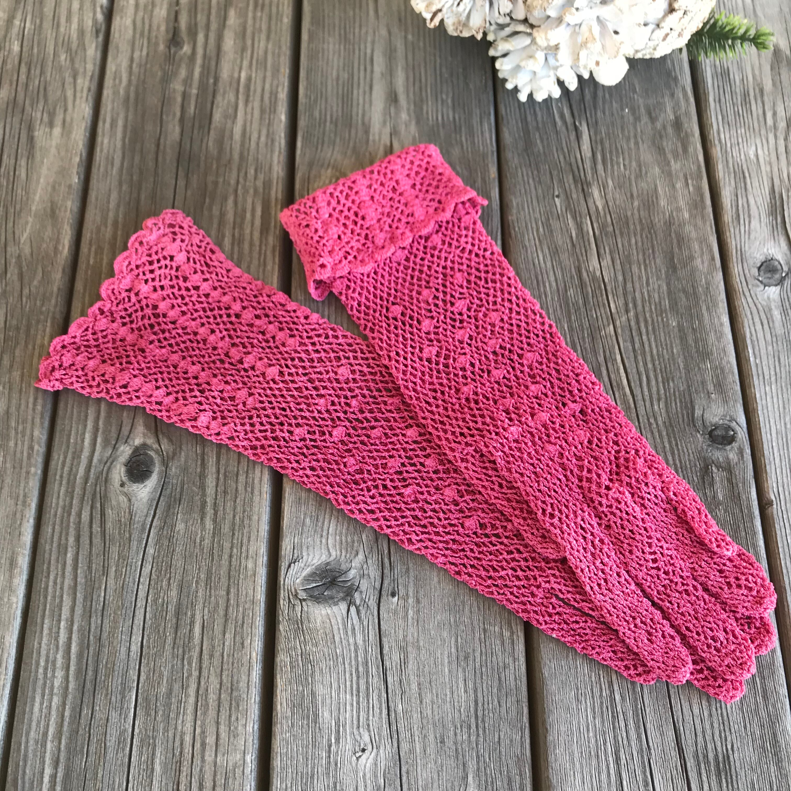 オールドローズカラーの2way手編みグローブ アンティークなクロッシェレース手袋 ミドルショート